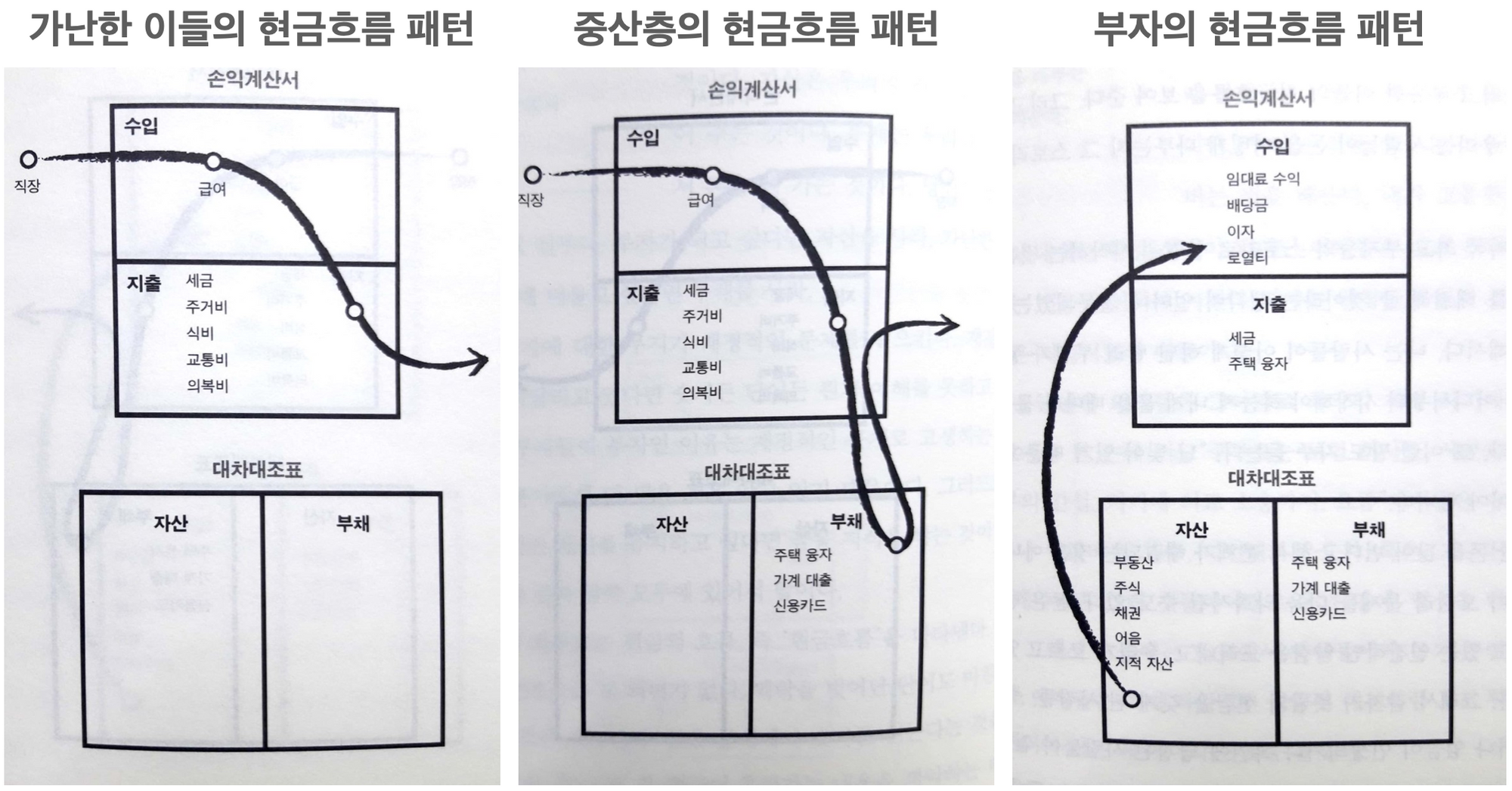 가난한 이들, 중산층, 그리고 부자들의 현금흐름을 각각 제시한다.