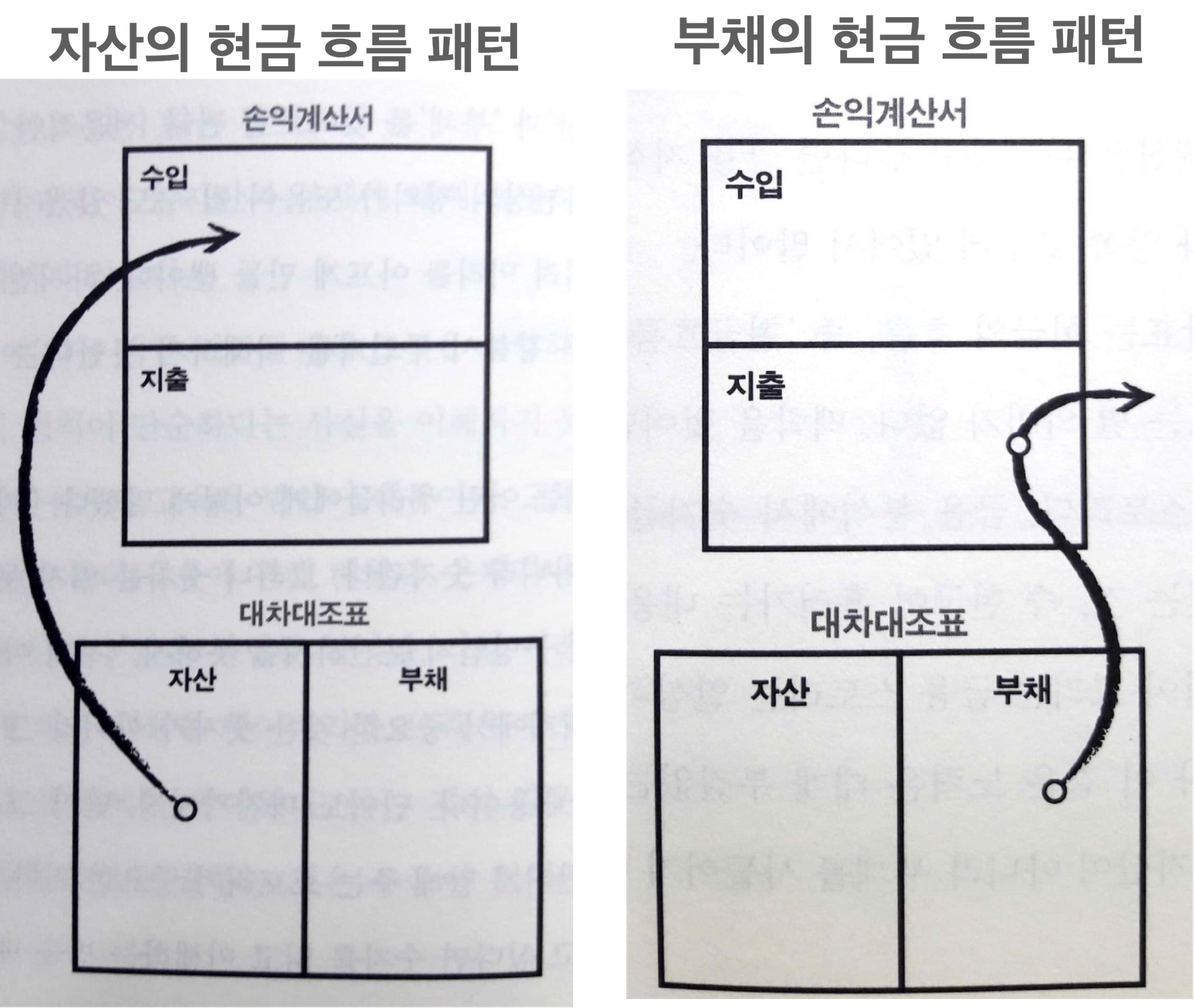 이 단순한 그림들을 현금흐름을 보면 각각의 사람들이 돈을 어떻게 다루는지 알 수 있다.